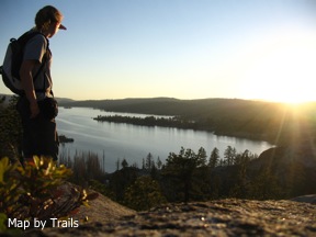 During the summer of 2006 I worked on the Summit Ranger District of the Stanislaus National Forest. One day after work in late June I decided to go on a quick hike to Sword and Lost Lakes (1). I threw together a pack of the essentials (2) and left a voicemail for my mom telling her where I was going (3). I hiked to Lost Lake and then on to Sword Lake. There was an overlook to Spicer Meadow Reservoir on the north side of Sword Lake so naturally I went to explore what I could see. The sun was getting close to going down so I decided to watch the sunset from the overlook and have a snack (4).