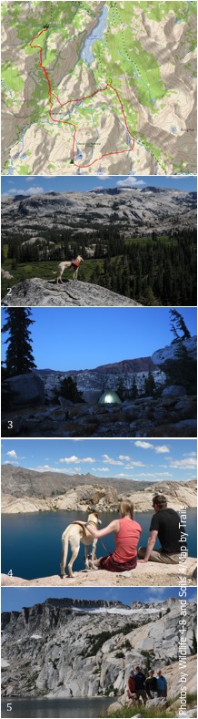 1. Click for larger map 2. Lower Relief Valley and Granite Dome 3. Camp at Iceland Lake 4. Lewis Lakes 5. The group at Ridge Lake