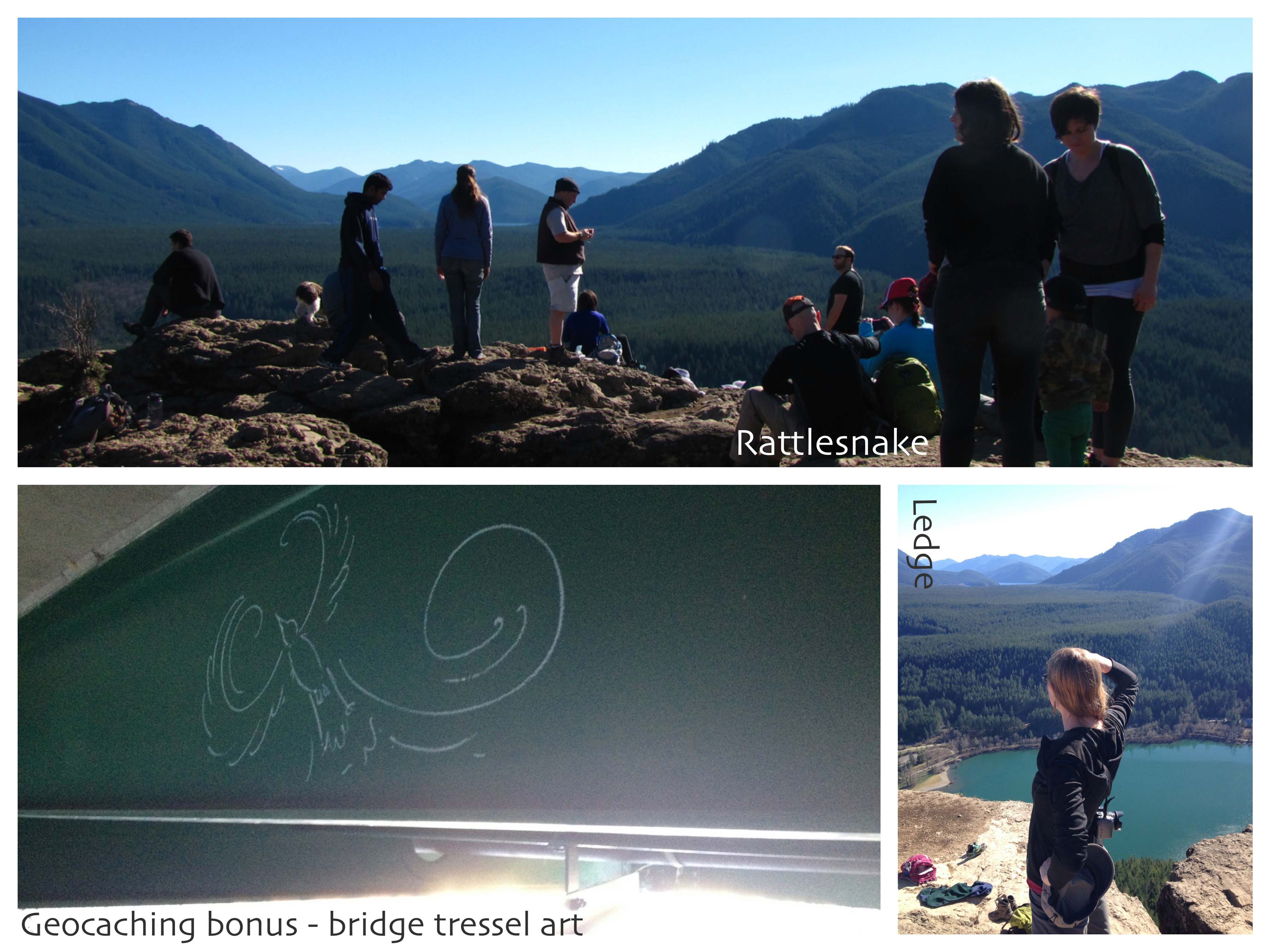 The hike up is a steady two-mile climb to an intersection where you turn right for Rattlesnake Ledge or if you want more adventure and some solitude you can continue to Middle or Upper Ledge. If you bring an adventure pup with you, be sure to pack a leash, the ledge has the obvious drop off plus various fissures waiting to claim a victim. Not to say this is a dangerous hike; it seemed like every other group had either a dog or a baby, just something to be aware of. Now go soak up some vitamin D!