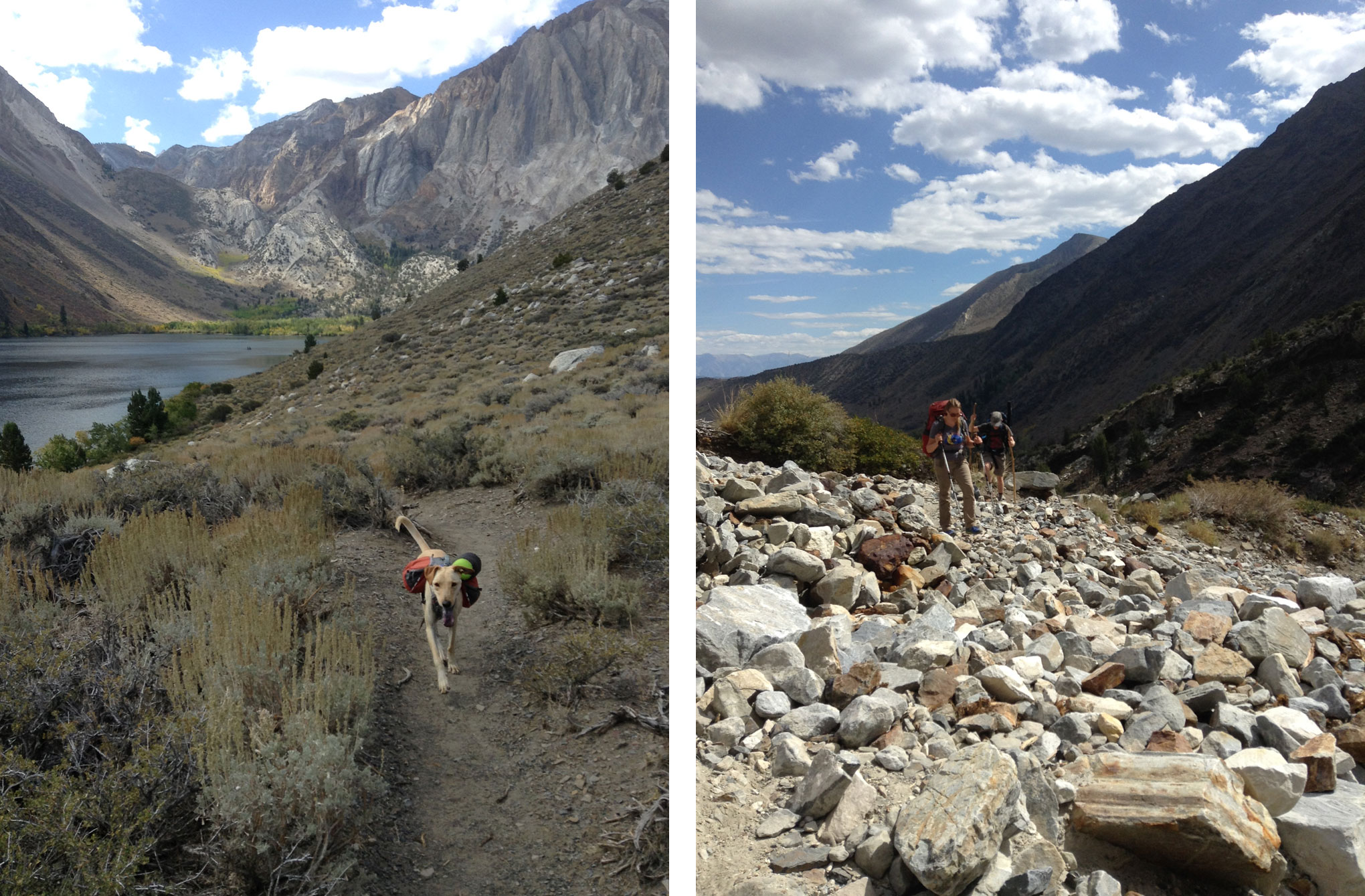 As Aspen and I circumnavigated the trail around Convict Lake my gaze kept returning to the striking geology of the Sevehah Cliff. Aspen wasn’t nearly as impressed as I was, she was just happy to be on the trail; I, on the other hand, wanted to explore up the canyon. We didn’t have time on that hike in 2013, but since then, every time I passed on Highway 395 I’ve glanced up the canyon asking, “What’s up there?!” So when Basil and Soils-4 asked for ideas for an Eastern Sierra adventure I tempted them with a few photos from the internet and sealed the permit when we found Bunny and Bighorn Lakes on the map – ironically we didn’t visit either on this trip.